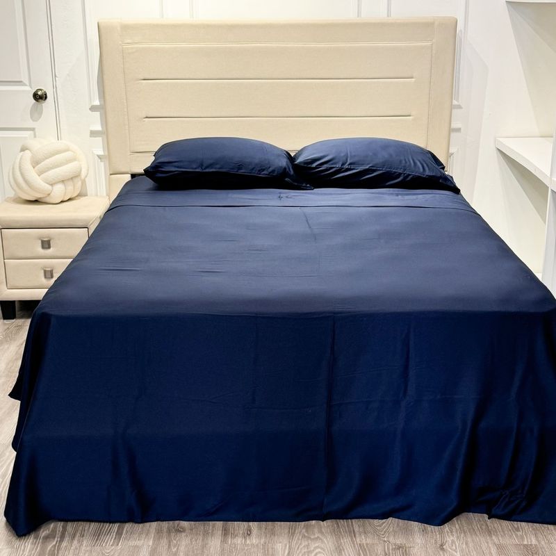 Nuestra nueva colección de sábanas, confeccionadas con Bambú Lyocell de calidad premium, son sedosas, suaves, frescas y cuentan con una apariencia satinada. Gracias a su tecnología termo-reguladora, ofrecen una experiencia de descanso confortable, adaptándose a la temperatura: cálidas en frío y frescas en calor. Además, absorben el sudor y los olores, y por el tipo de tela, ayudan a reducir el frizz del cabello. Son libres de químicos, perfectas para pieles sensibles o personas con acné, y resistentes a bacterias, chinches, ácaros y polvo.