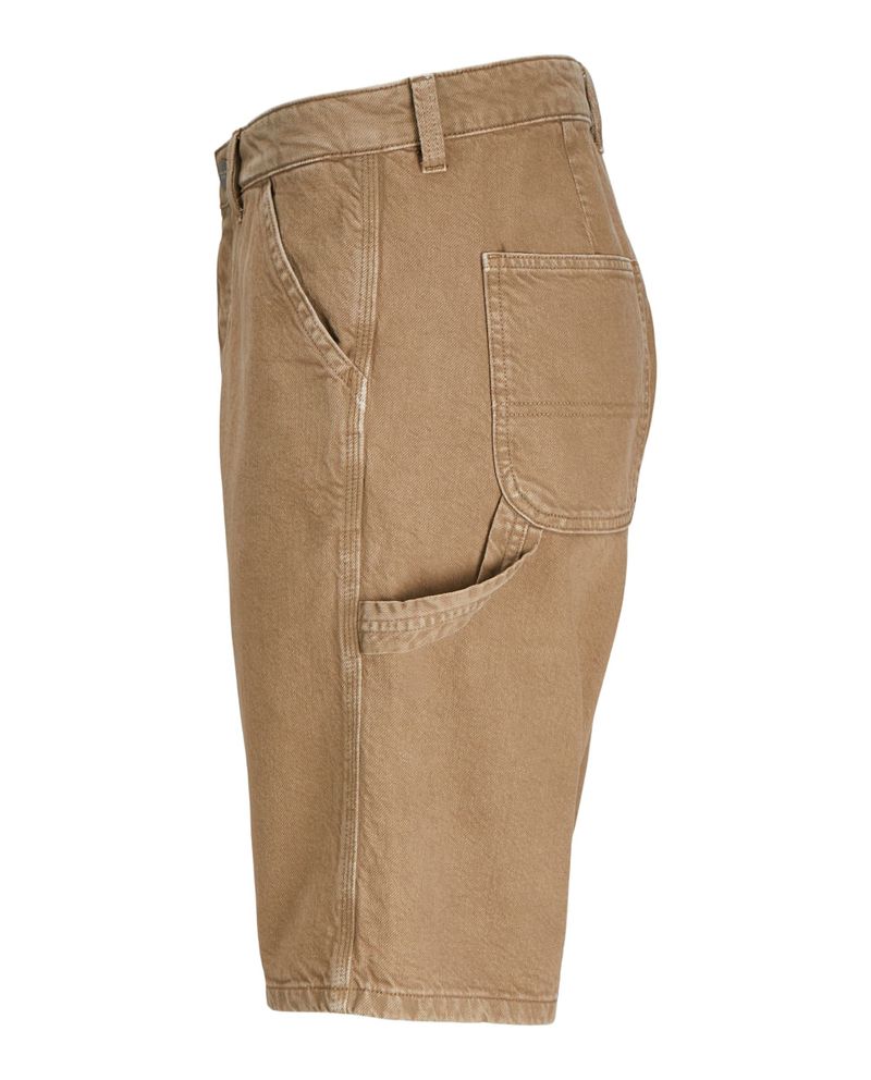 Short casual de tiro alto de la marca juvenil Jack & Jones, diseñado en color café denim, con cierre de botón y cremallera.