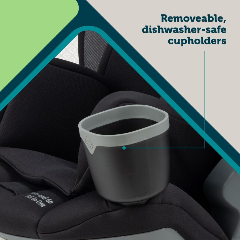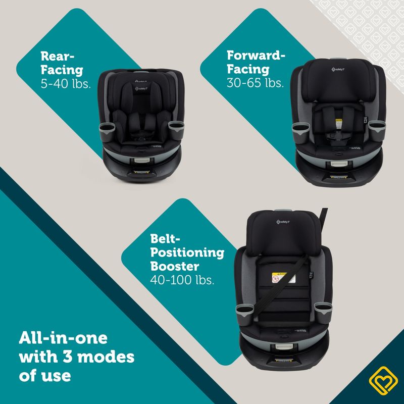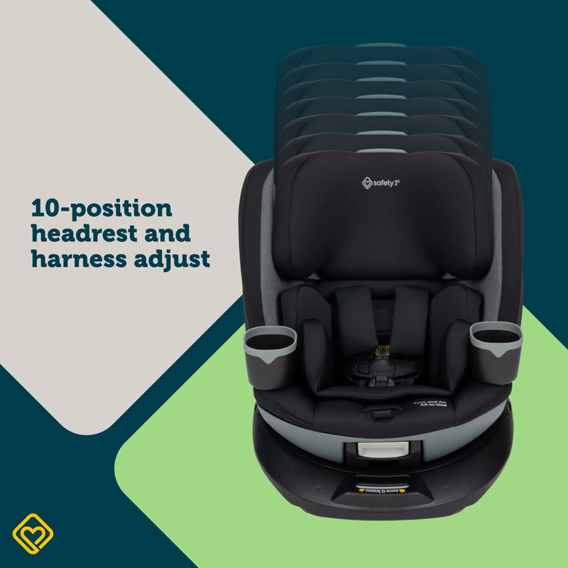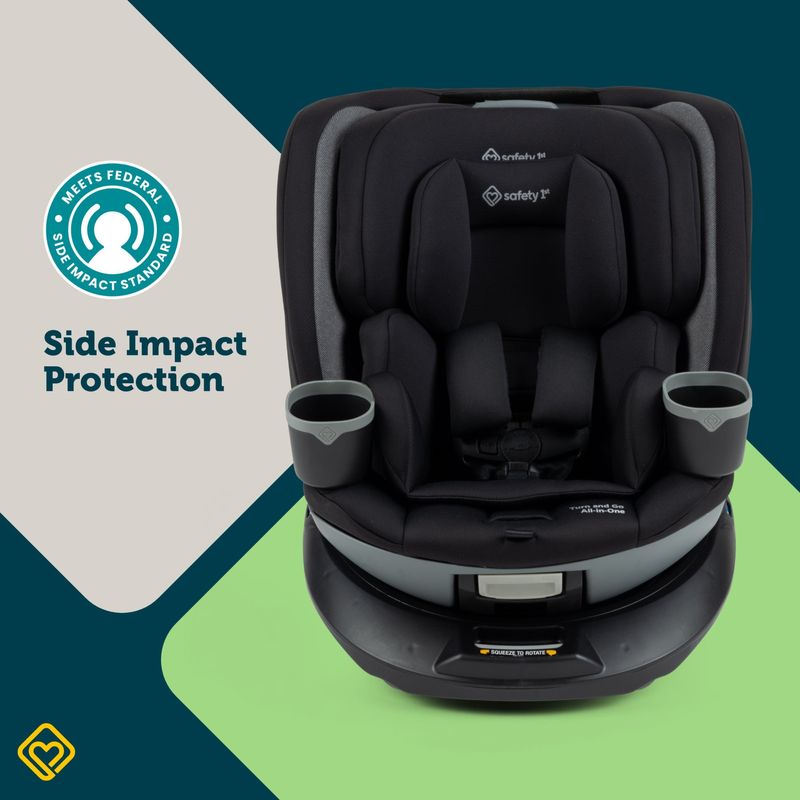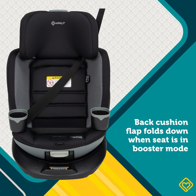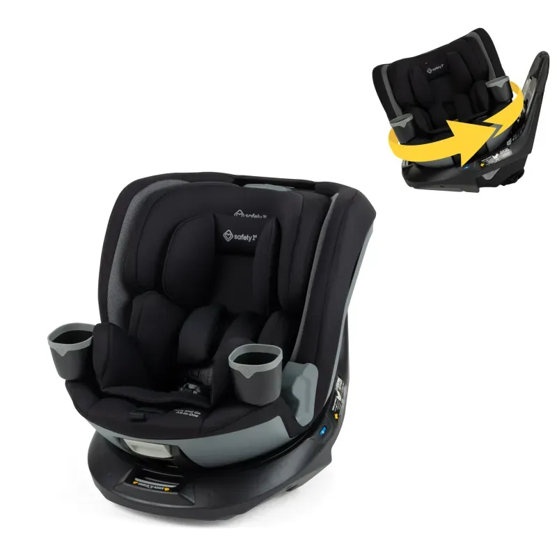 Safety 1st Turn and Go 360° gira completamente para acompañar el crecimiento de tu hijo, desde recién nacido hasta etapa booster. Diseñada para uso prolongado de