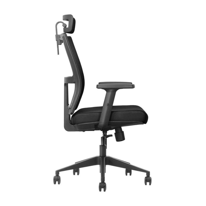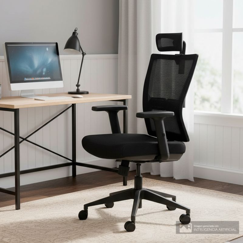 Malla de alta resistencia respirable con protección UV y sistema de inclinación sincronizado con ajuste de la tensión Base de nylon reforzado y cinco puntos de apoyo con rodos robustos, proveen un movimiento suave y silencioso.