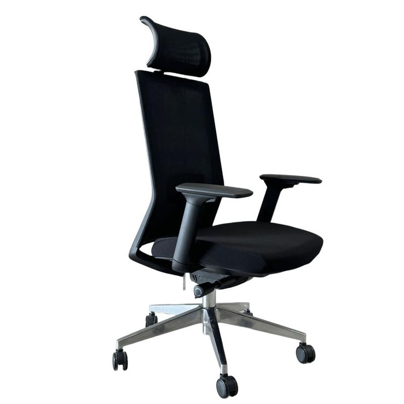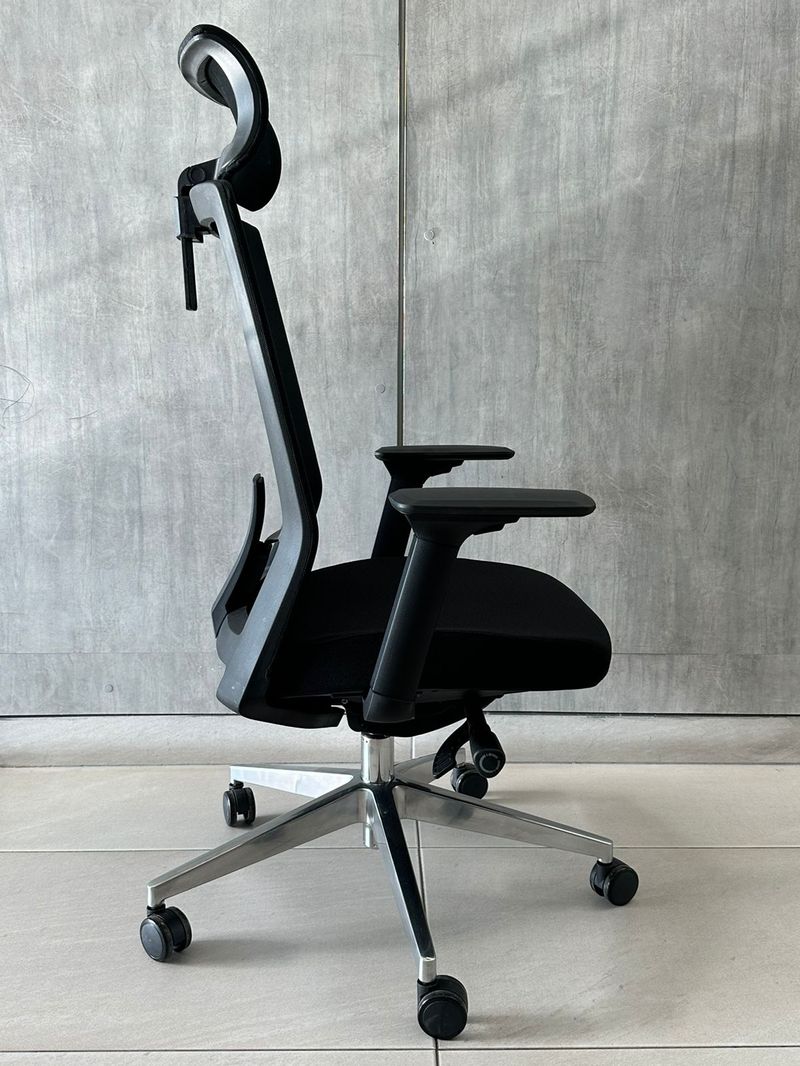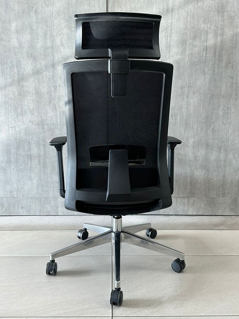 Silla 9Y con moderno diseño, Base metálica de aluminio pulido, ajuste de altura, sistema de inclinación de 5 posiciones con movimiento sincronizado. Respaldo de malla con soporte lumbar ajustable, apoyabrazos 4D ajustables, asiento ajustable y apoyacabezas ajustable.
