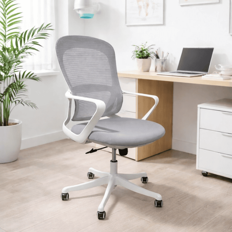 Silla semi ejecutiva ergonómica ideal para oficinas, home office o espacios corporativos que requieren comodidad y funcionalidad. Cuenta con respaldo en malla de alta resistencia que permite una adecuada ventilación, favoreciendo una correcta postura cervical y lumbar durante largas jornadas de trabajo. Su asiento acolchado, tapizado en tela resistente, ofrece una superficie amplia y confortable para uso prolongado. Incorpora mecanismo de ajuste de altura neumática y sistema de reclinación para mayor adaptabilidad, brazos de nylon reforzado fijos integrados y base giratoria de cinco puntas en nylon reforzado que brinda estabilidad y durabilidad. Soporta hasta 275lbs. Cuenta con 6 meses de garantía.