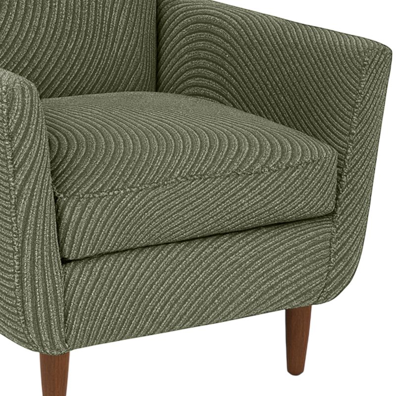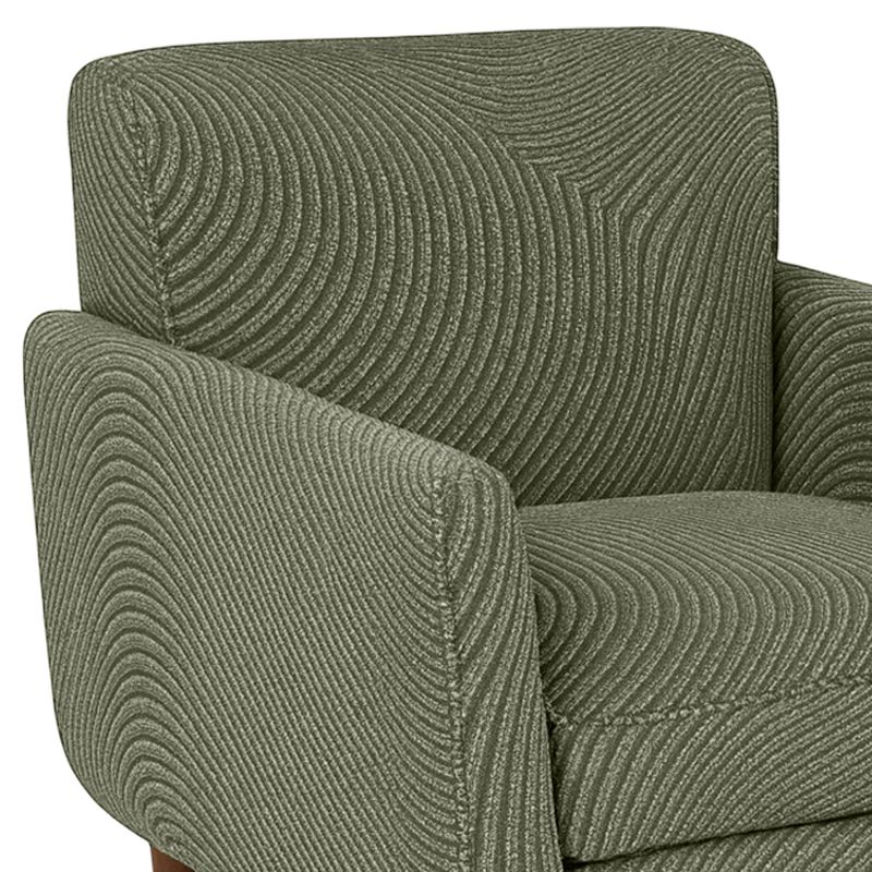 • Tapizado en una tela suave y resistente, su tonalidad verde neutra aporta elegancia y frescura, permitiendo combinarlo fácilmente con paletas naturales, madera y tonos terrosos. El diseño de las ondas genera un efecto dinámico que lo hace sobresalir sin perder sutileza.