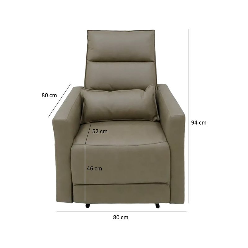 Cuenta con un mecanismo reclinable manual de fácil uso, que permite ajustar el respaldo a una posición más relajada, ideal para leer, ver televisión o simplemente descansar. El respaldo alto con acolchado ergonómico brinda un excelente soporte para la espalda y el cuello, mientras que el asiento, firme pero cómodo, garantiza estabilidad y confort incluso durante periodos prolongados.