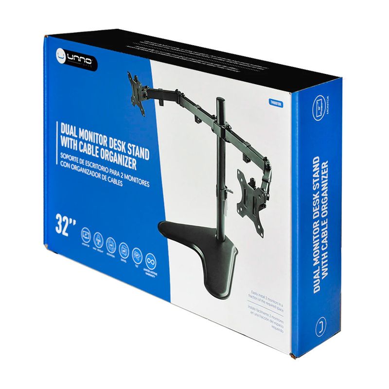 El Soporte para 2 Monitores Unno Tekno TM8001BK es una solución ergonómica y resistente, diseñada para optimizar espacios de trabajo profesionales, ofreciendo ajuste flexible y estabilidad para pantallas dobles.