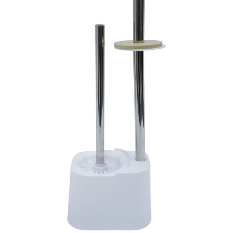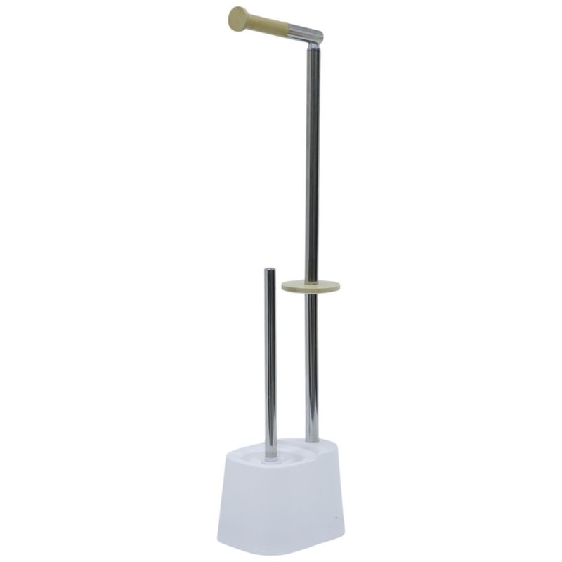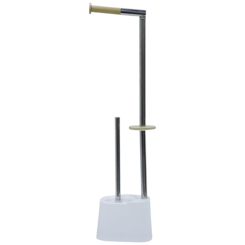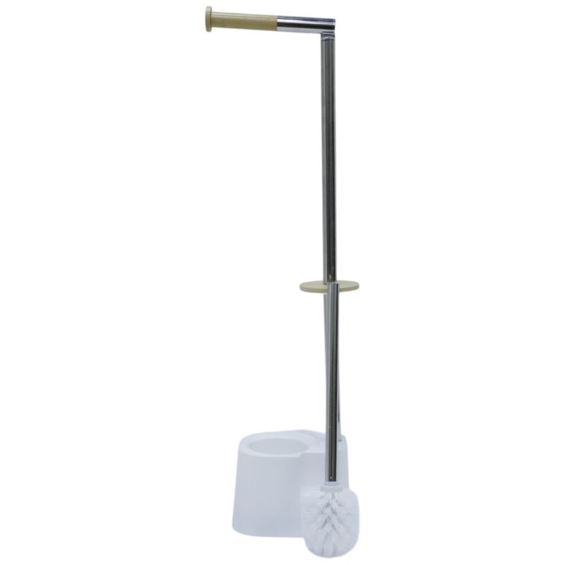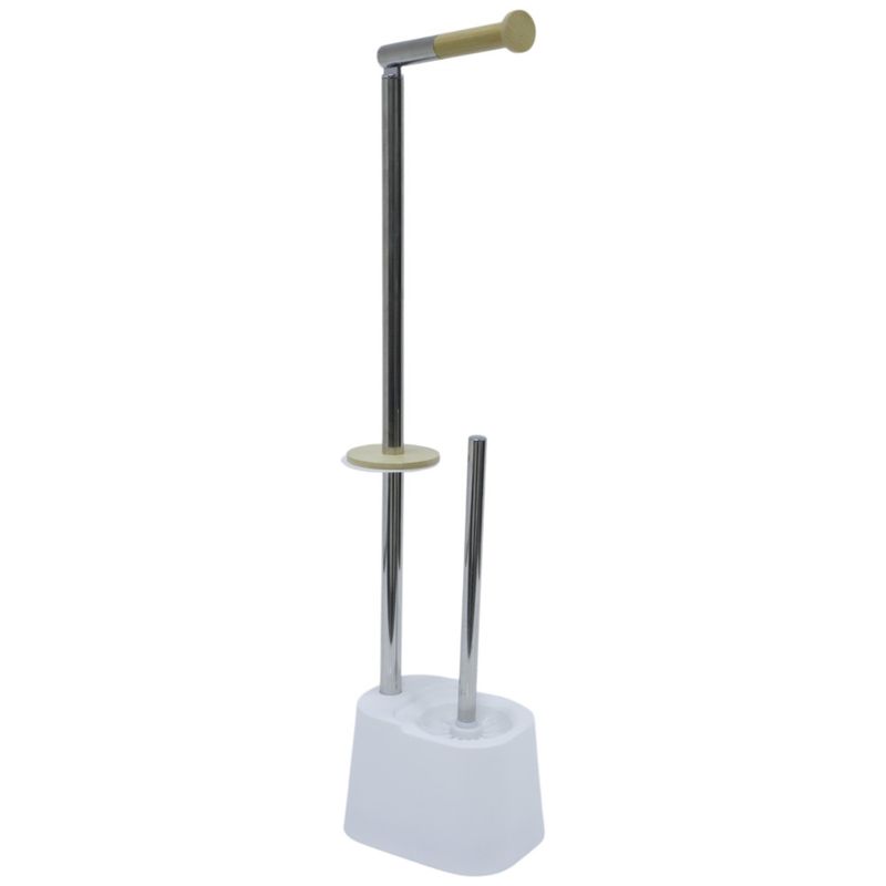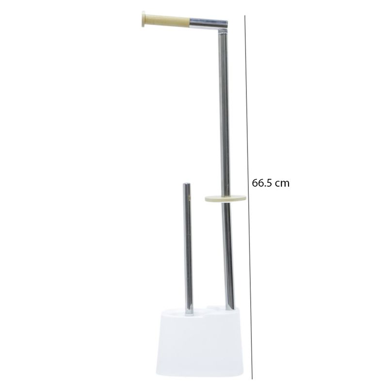 Mantén tu baño ordenado y con estilo con este soporte para papel higiénico con cepillo integrado de 66.5 cm. Su base estable sostiene el recipiente del cepillo y el portarrollos superior, mientras que los detalles en bambú le dan un toque moderno y elegante. Su diseño todo-en-uno ahorra espacio y ofrece practicidad inmediata sin necesidad de instalaciones. Ideal para baños pequeños o minimalistas.