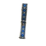 Los rombos azules, dispuestos de manera uniforme a lo largo de la correa, añaden un toque de color y dinamismo al diseño. El contraste entre el beige y el azul crea un aspecto llamativo y atractivo que puede complementar tanto atuendos formales como informales.