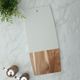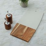 Tabla para quesos fabricada con una combinación de mármol y madera. Su diseño de doble material permite una superficie resistente y estable para cortar y presentar distintos tipos de quesos y embutidos. El mármol ayuda a mantener los alimentos frescos por más tiempo, mientras que la madera brinda un soporte firme y seguro. Ideal para servir en reuniones o como base funcional en la cocina. Fácil de limpiar y duradera.