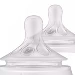 Set de 2 biberones de respuesta natural coopera con el ritmo de alimentación natural del bebé, lo que permite combinar la lactancia materna y la alimentación con pacha sea facilmente. El biberón tiene una abertura única que solo libera leche cuando el bebé traga de forma activa. Por lo tanto, cuando hace una pausa para tragar y respirar, el flujo de leche también se detiene. El biberón ancho, suave y flexible está diseñada para imitar la forma y la sensación de un pecho, lo que ayuda a que el bebé se sujete de forma natural y se alimente cómodamente. La válvula anticólicos está diseñada para mantener el aire alejado de la pancita del bebé durante la alimentación, a fin de ayudar a reducir los cólicos y los malestares. Ideales para edades 0M+, flow 2, libre BPA.