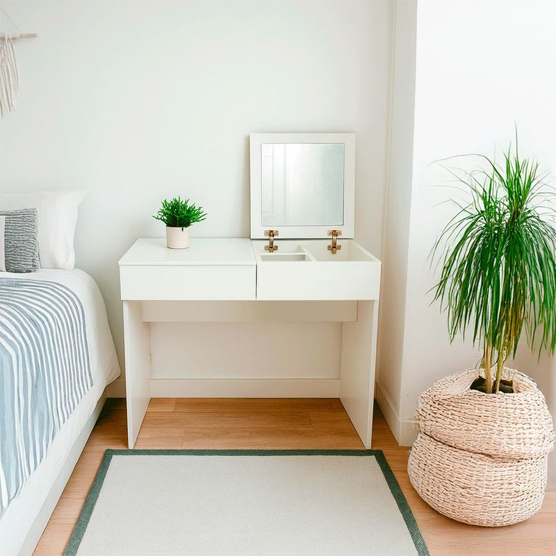 Versátil, moderno y elegante. El tocador Dualis puede usarse como tocador con espejo abatible o como escritorio, siendo un mueble multifuncional ideal para optimizar espacios. Fabricado con melamina chilena de 15 mm y herrajes metálicos, combina estilo y practicidad en un solo diseño. ¡La doble función que tu hogar necesita! ? Hecho en El Salvador.