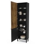 Fabricada con estructura negra, 1 puerta en color negro y 1 puerta en color Álamo, incluye 6 repisas, dos de ellas son desmontables fácilmente, en el cual podrás organizar tus utensilios. Su material es fácil de limpiar y sobre todo resistente.