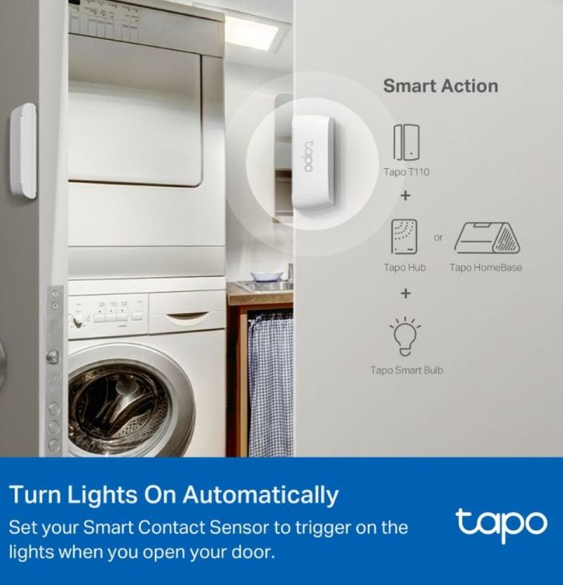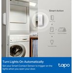 acciones inteligentes, conectándose con otros dispositivos Tapo para automatizar funciones como encender luces, activar alarmas o controlar cámaras de seguridad al abrir o cerrar una puerta.