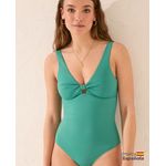 Traje de baño diseño sólido con detalle de cut out, estilo una pieza. Prenda que se caracteriza por su cobertura desde los hombros hasta la entrepierna. Acentúa la figura, creando la ilusión óptica de una cintura más pequeña y piernas estilizadas, te brinda comodidad y seguridad. Cuello keyhole y tirantes con cierre de amarre en la parte posterior.