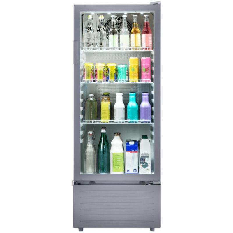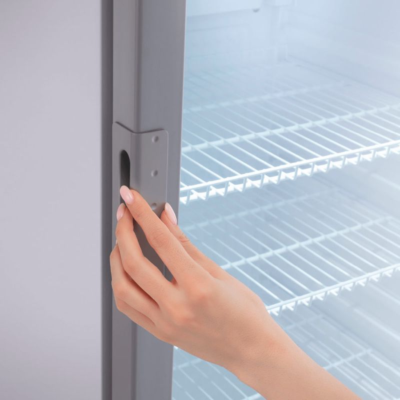 Recomendado para uso comercial, control mecánico de temperatura, parrillas ajustables metálicas anti-corrosivas resistencia hasta 20kg, refrigerante R600a, puerta con protección low-e impide el ingreso de rayos UV al producto interior blanco con marco de puerta gris, luz led, sistema anti condensación asegurando una visibilidad clara.