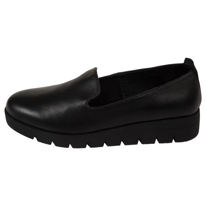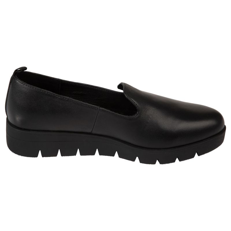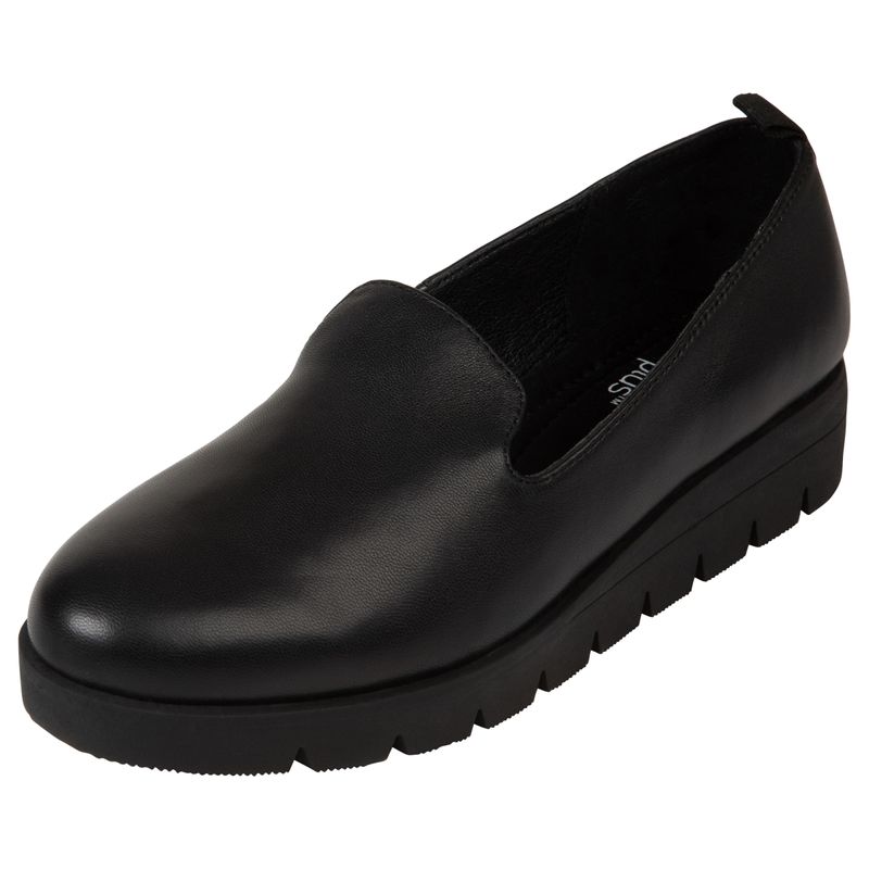 Zapatos de mujer de Comfort Plus en color negro, con diseño slip-on con suela de plataforma baja. Proporcionan comodidad y soporte para el uso diario, lo que los hace perfectos para looks casuales o de trabajo.