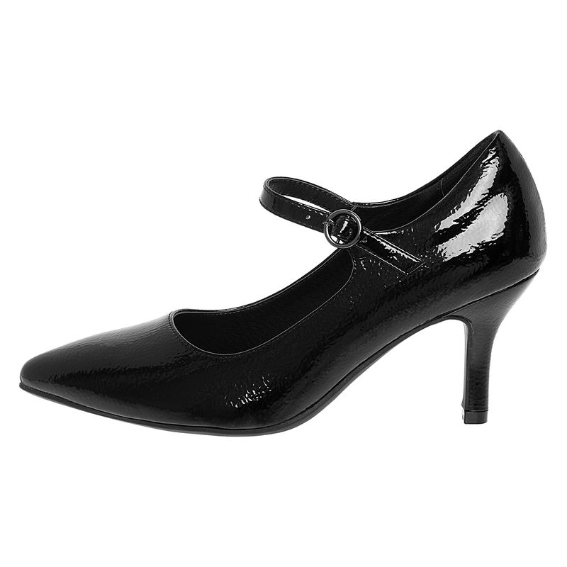 Eleva tu look formal con los tacones Mary Jane negros Comfort Plus, diseñados para mujeres que desean estilo sin comprometer la comodidad. Con un elegante acabado de charol, correa segura y tacón de apoyo, estos zapatos de tacón son perfectos para la oficina, ocasiones especiales o un atuendo diario pulido.