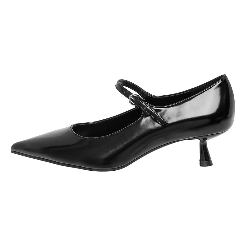 Entra en la elegancia atemporal con estos clásicos tacones Mary Jane negros para mujer. Diseñados con una punta puntiaguda elegante y una correa de hebilla segura, ofrecen estilo y estabilidad para el uso en la oficina, eventos formales o una salida nocturna. La altura moderada del tacón garantiza comodidad durante todo el día sin comprometer la sofisticación elegante.